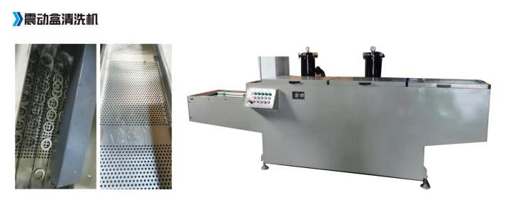 震動盒清洗設備的特點是傳送方式,震動盒折彎-體成型,針對一些小工件。 例如:各種小螺絲,8類軸承墊片,各種薄片,用網(wǎng)帶機型容易卡網(wǎng)帶。這就體現(xiàn)出震動盒的優(yōu)勢出來,U型槽一體成型,兩側沒有縫隙,靠震動頻率向前輸送。
